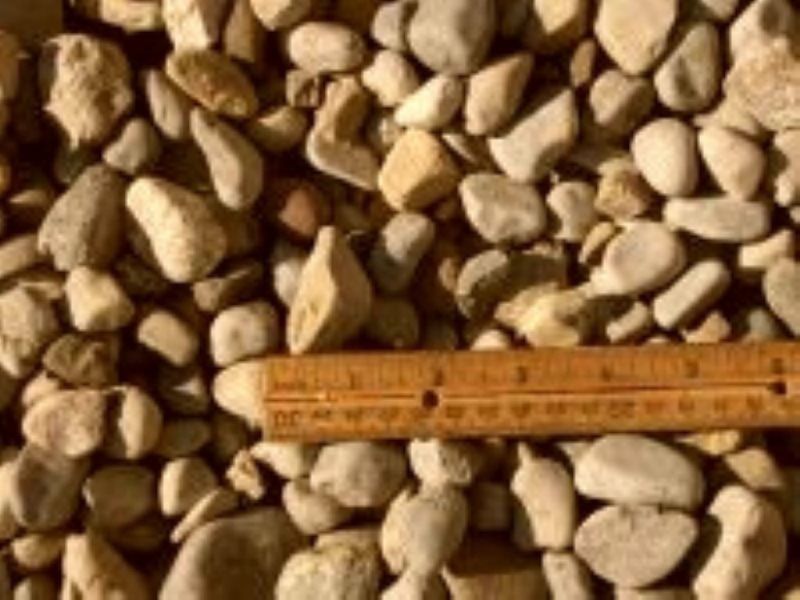 River jack is grayish in color with some tan highlights: it is smooth in texture. It is commonly used around pool areas. River jack is decorative and can be used in a variety of landscape settings. Additionally, it may be used for walkways. One unit covers approximately 75 square feet, 4”.