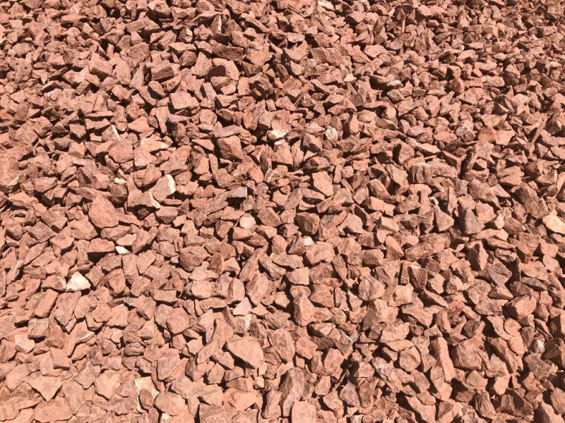 Red driveway stone or red shale is commonly used for driveways. It can also be used as a decorative stone around walkways, fixtures and beds. One unit covers approximately 75 square feet, 4”.